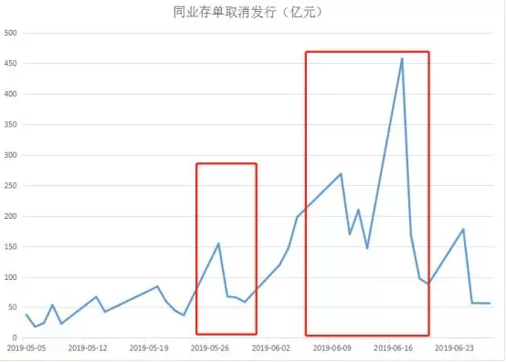 图三:同业存单取消发行的规模,在托管后有一个较大的上升,但到了六月份中旬非银流动性紧张期间,同业存单取消发行规模更大。这证实了虎哥点香之前的判断,非银流动性紧张,是中小银行流动性紧张的传导。