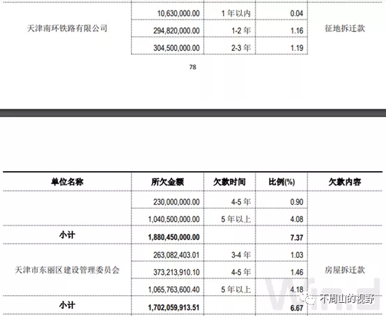 再看看其他应收款前五名欠款的情况:财政局,土地整理中心,东丽管委会,你看看这些名字,和上面一样的感觉。