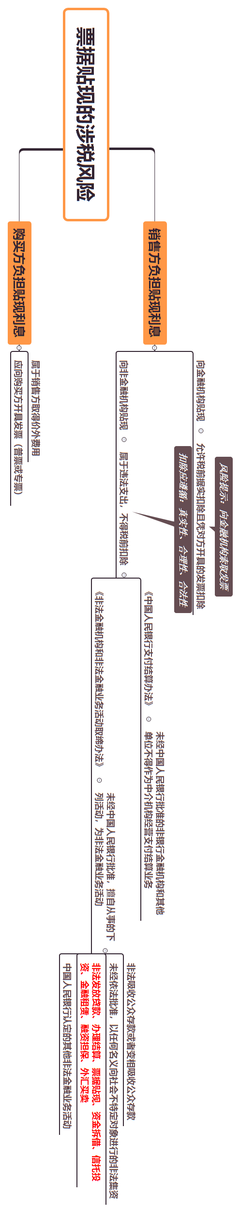 为清晰说明票据贴现的涉税风险问题,税喵将上述内容梳理为如下思维导图,以供参考。