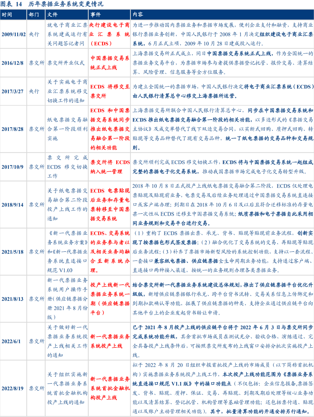 2022年6月3日,已于2021年8月投产上线的供应链平台与票交所同步完成系统功能升级,标志着新一代票据业务系统顺利投产上线;其余首批41家银行、10家财务公司共51家金融机构于8月20日投产新一代票据业务系统全流程业务功能。
