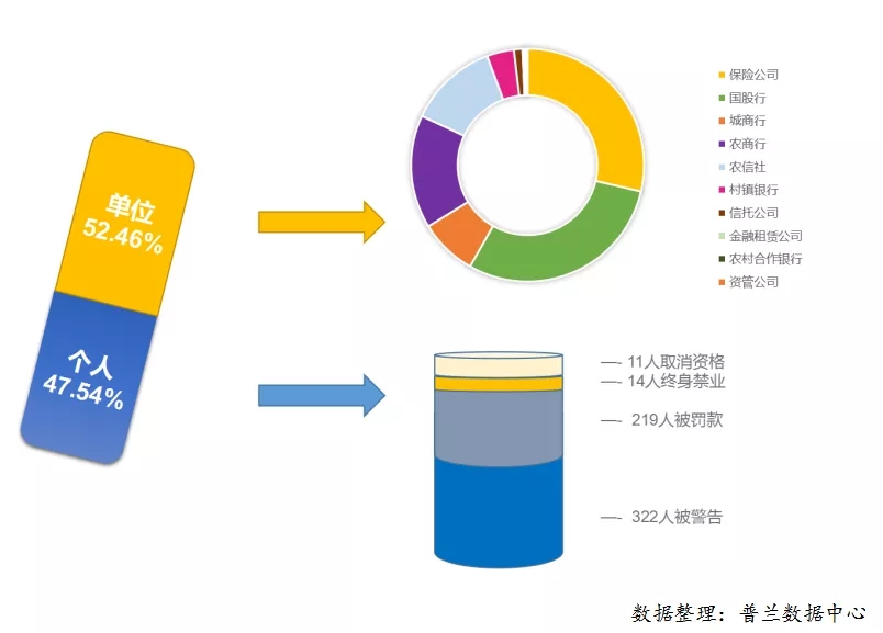 12月涉及个人的罚单中,其中11人被处以取消高级管理人员任职资格,14人被终身禁业,219人被罚款,322人被提出警告。