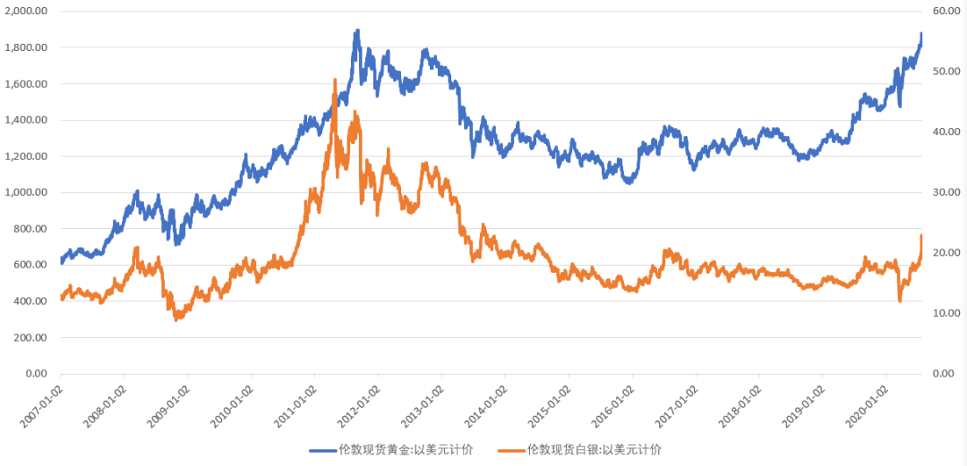 历史伦敦金、伦敦银走势对比