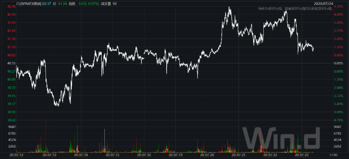 本周两大基准油冲高回落,截至7月23日,WTI原油周涨0.64%,报收41.07美元/桶,布油周跌0.12%,报收43.31美元/桶;7月至今,两大油分别震荡上涨3.14%及3.05%。