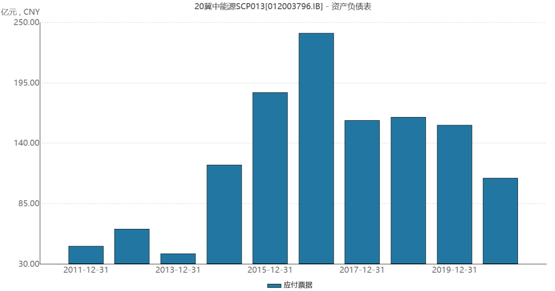 对于票据人最关心的是其应付票据情况,截至2020年3季报,应付票据为108亿,较上季度下降了近48亿,但总体还是非常高。纵观几年来,冀中能源集团的票据是一个大负债项目,2016年最高峰到过240亿,此后逐步下降,并维持在160亿左右!其债券的兑付遇到难题,也影响了票据的签发。